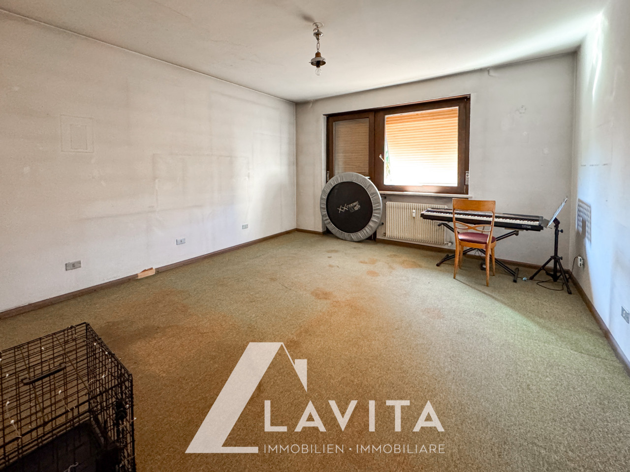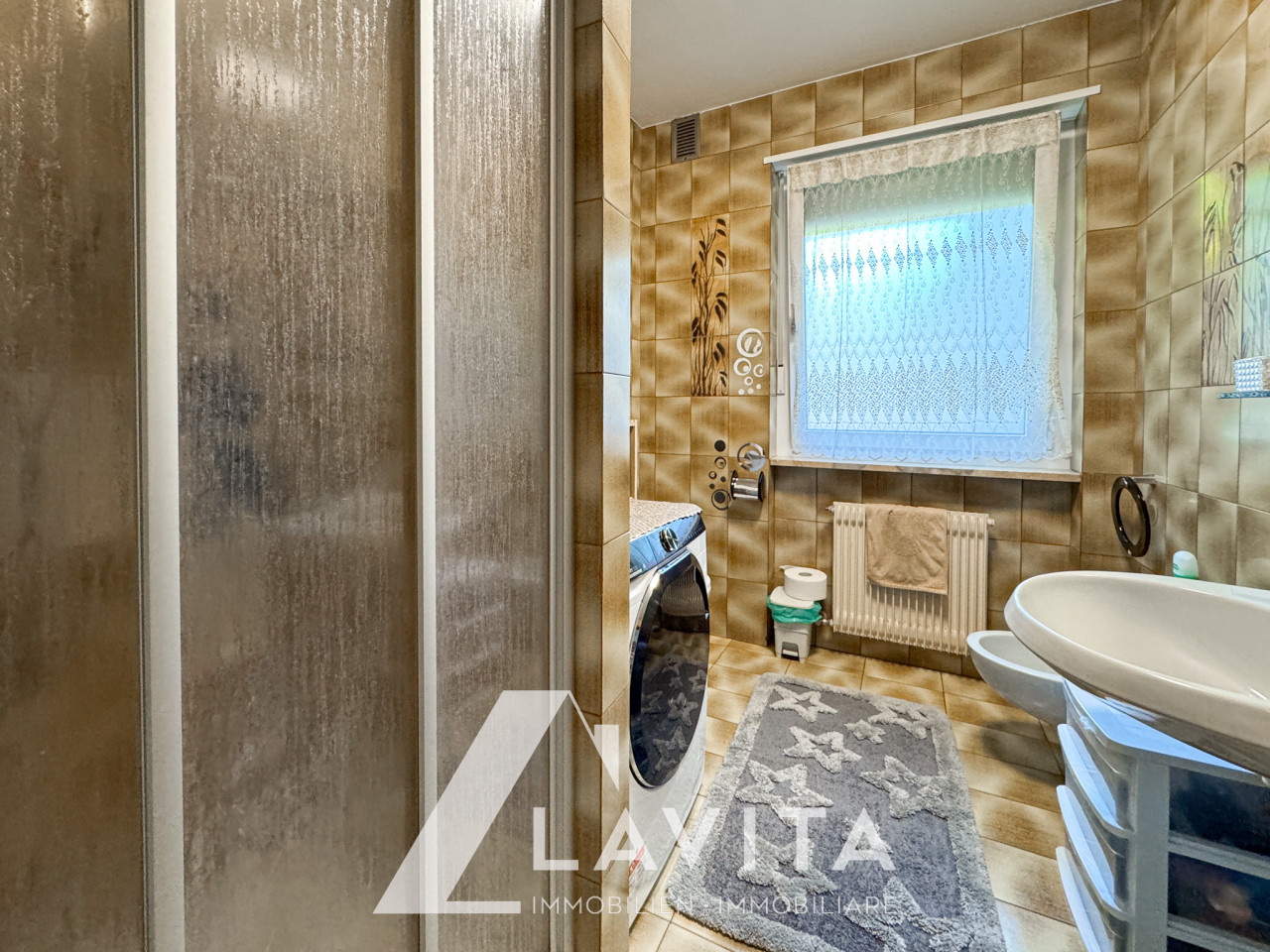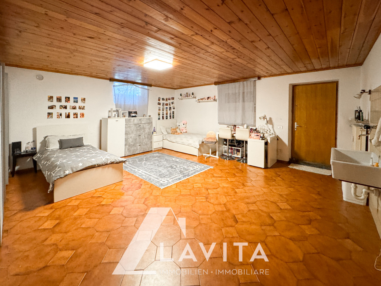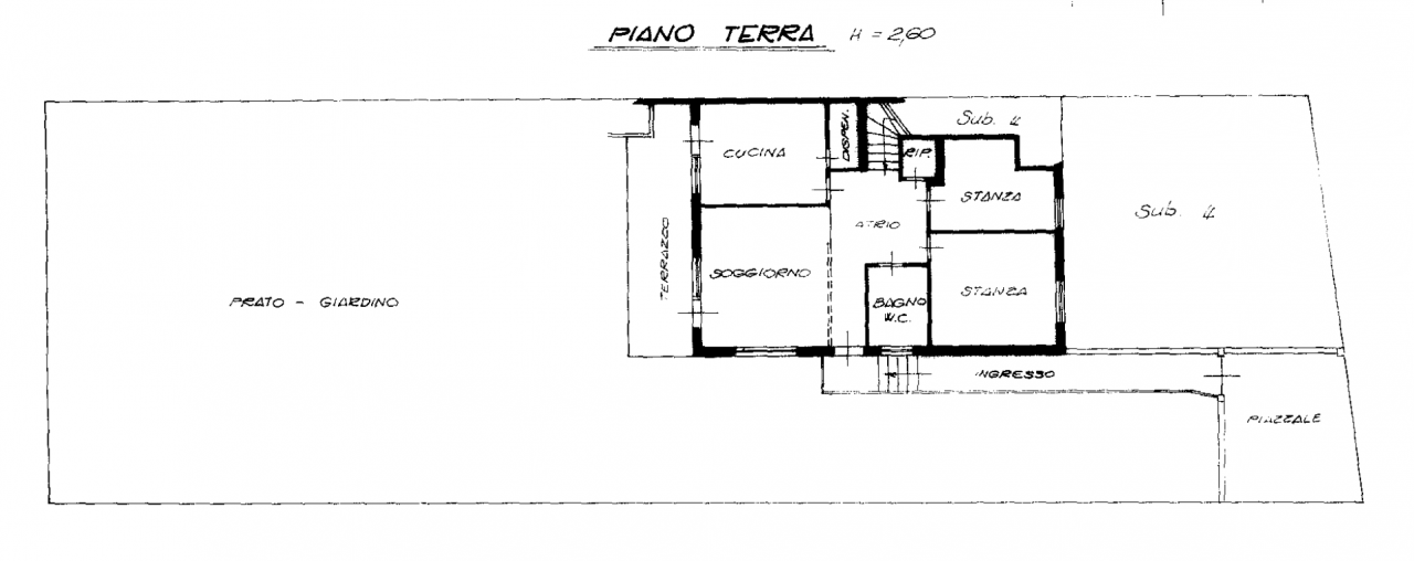 Al piano terra si trova un appartamento trilocale con ingresso indipendente, composto da un ingresso, una cucina abitabile, un ampio soggiorno, una camera matrimoniale, una camera singola e un bagno finestrato. Internamente è collegato a un locale aggiuntivo di circa 40 m², attualmente utilizzato come camera da letto. Questo piano offre molteplici possibilità d’uso, come spazio hobby, deposito o ampliamento della superficie abitabile.