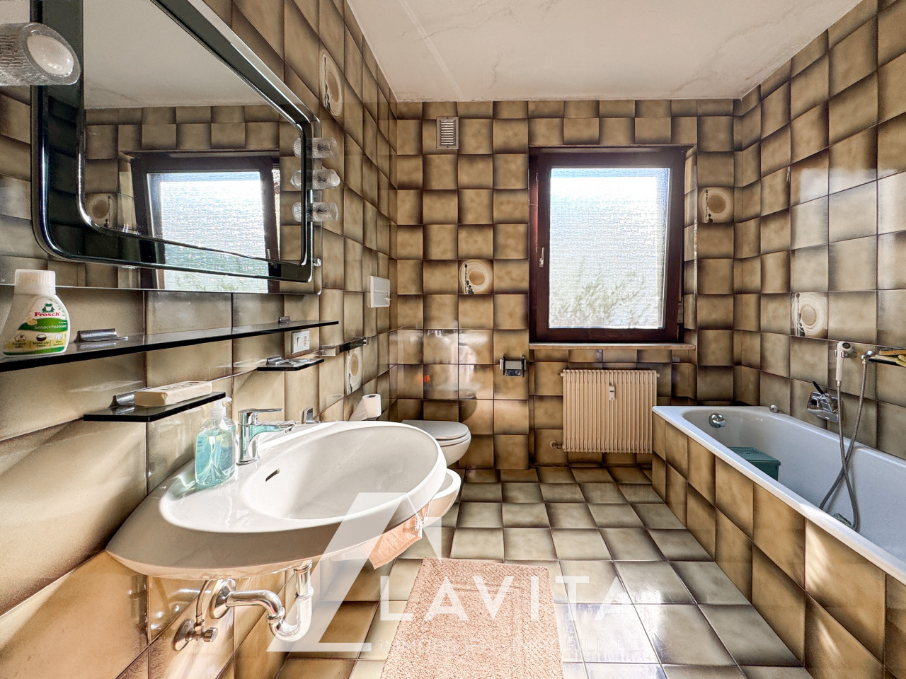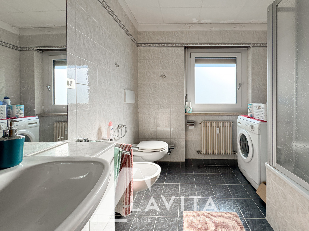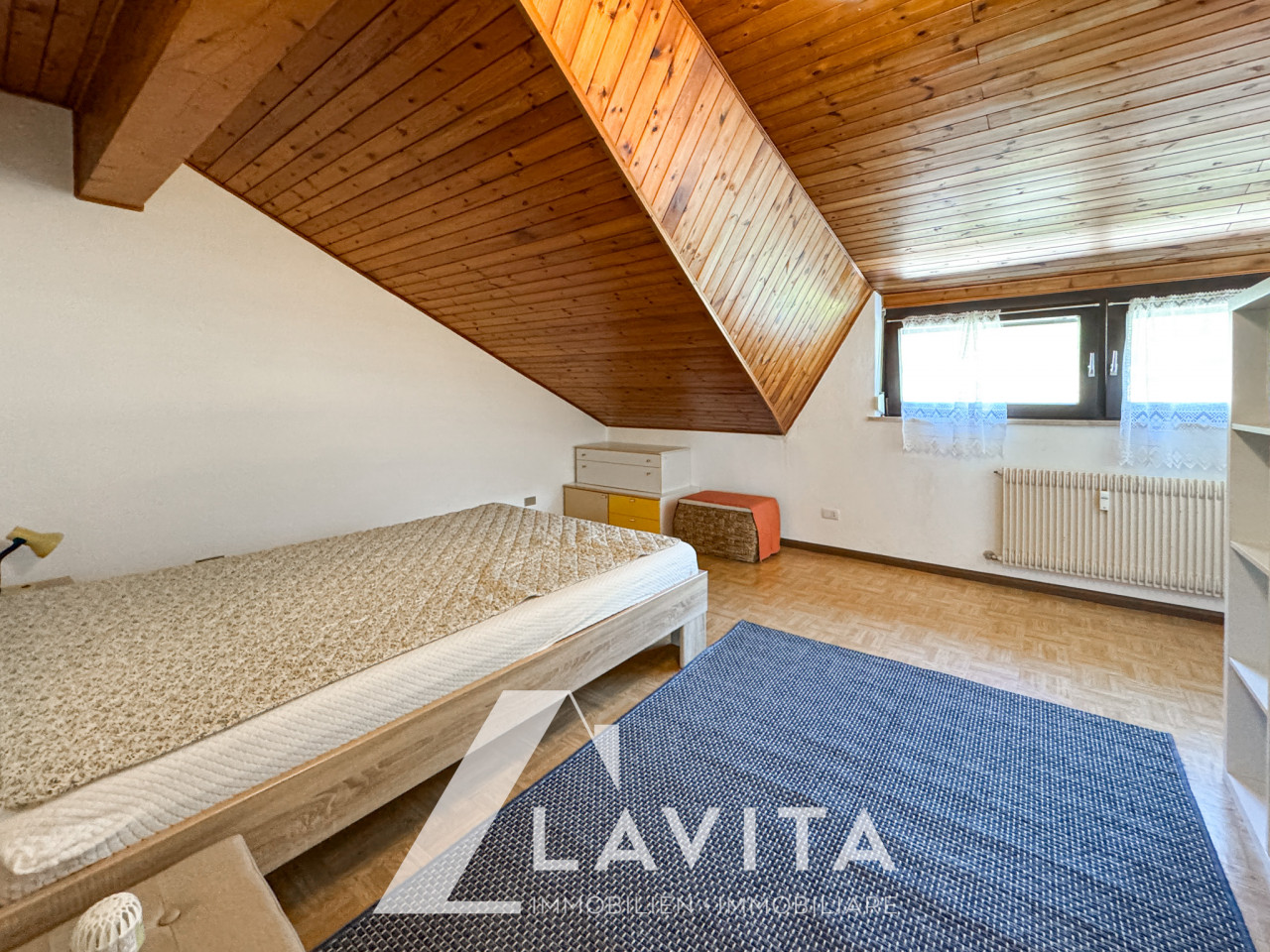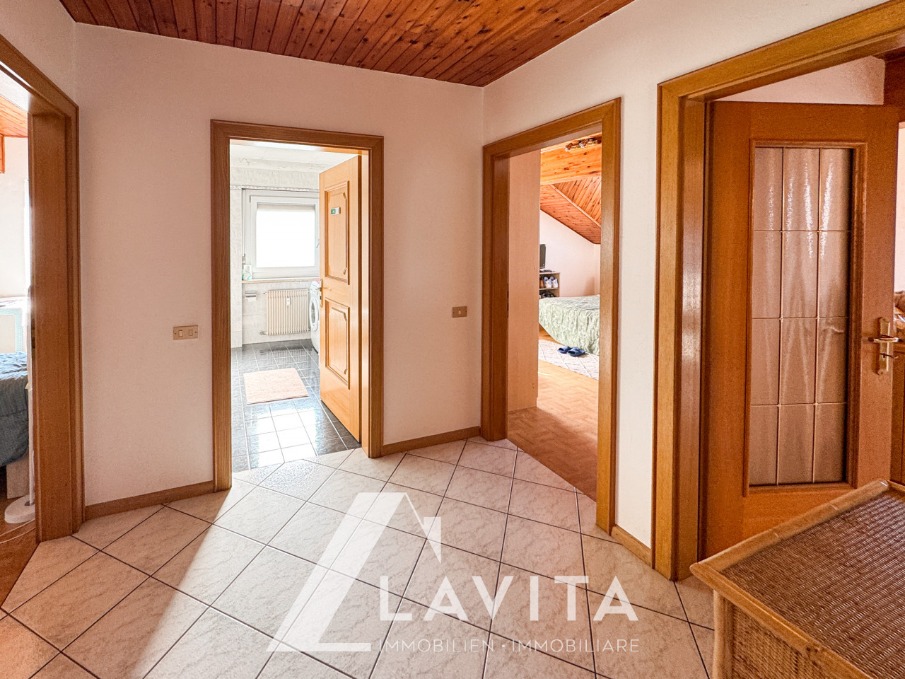 Il secondo piano dispone di tre camere, un bagno finestrato e una cucina separata – ideale come unità abitativa autonoma o come ampliamento dell’appartamento al primo piano.