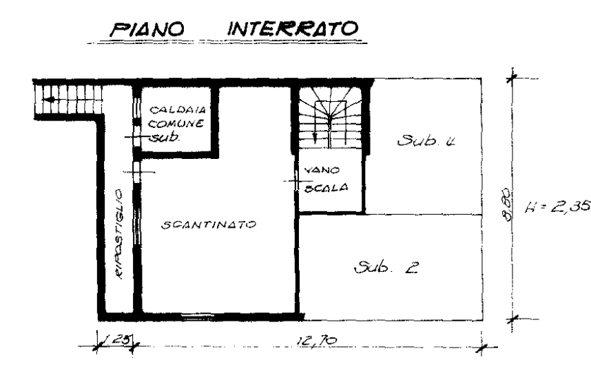 Nel piano seminterrato si trovano un garage di circa 32 m² e una cantina di circa 20 m².