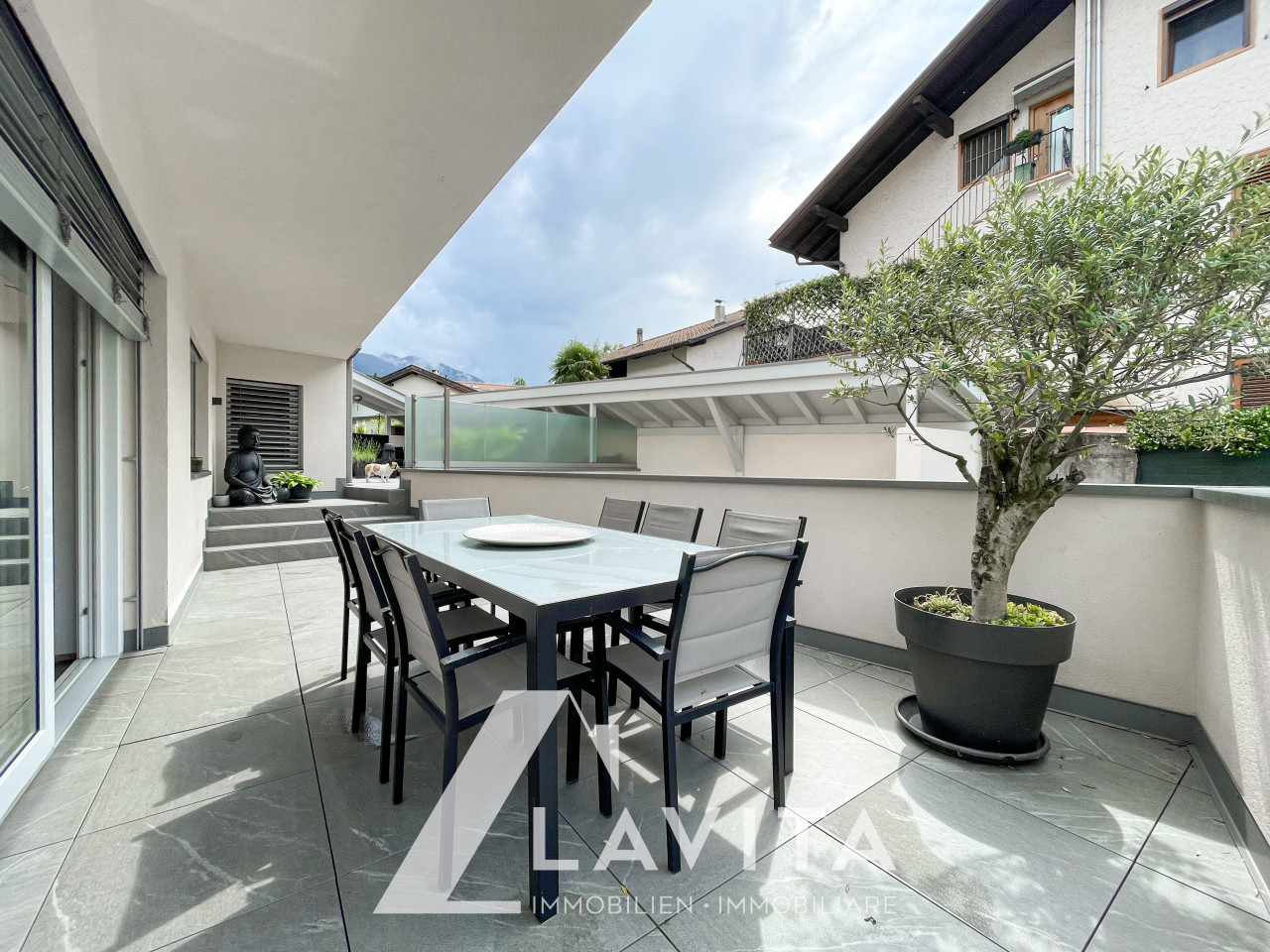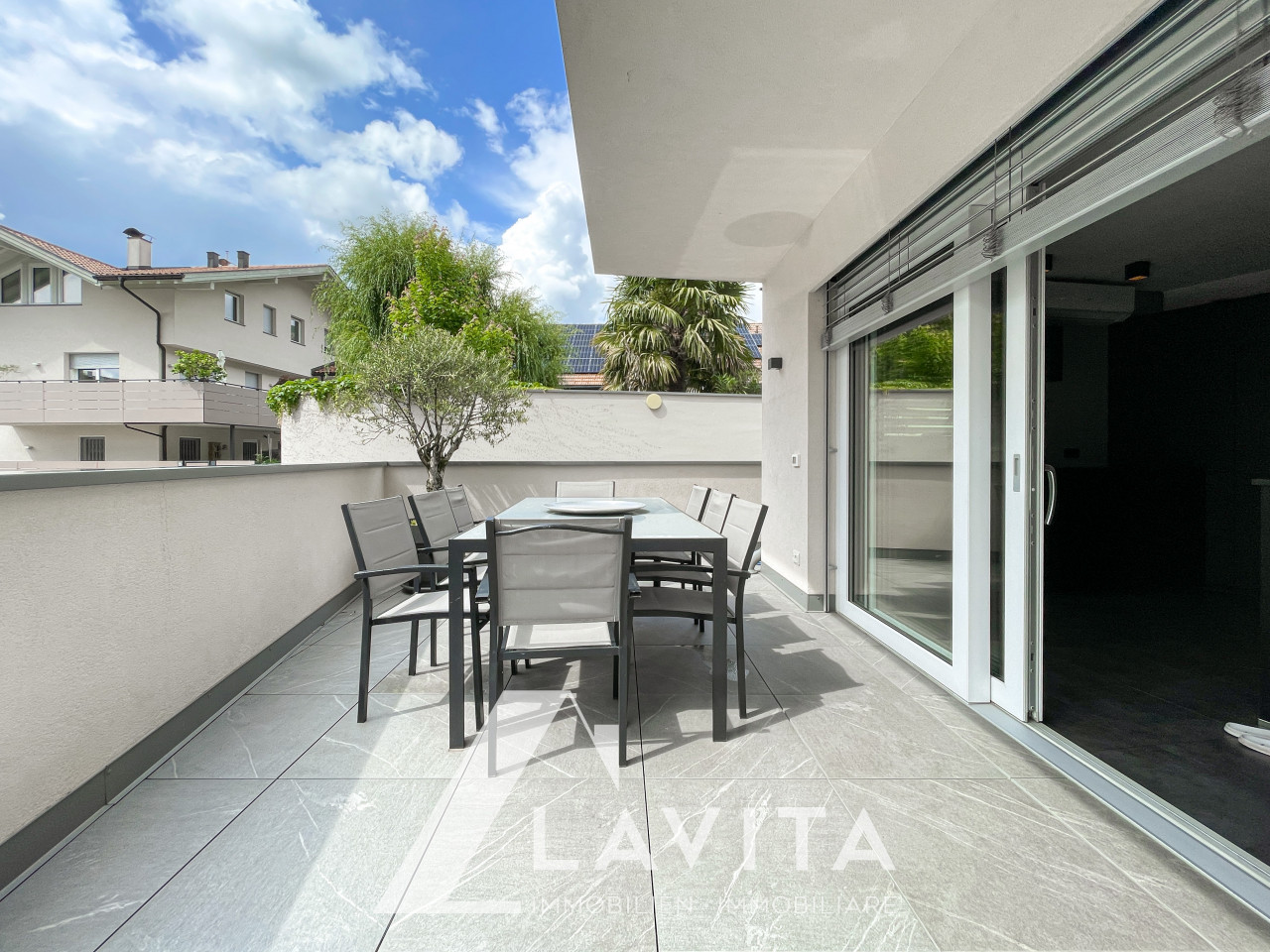 Con incarico in esclusiva: In una zona tranquilla e ben servita, al piano terra di una palazzina con solo 6 appartamenti costruita nuova secondo lo standard Casaclima A nel 2019, proponiamo questo pentalocale con ampio giardino e terrazza, unico nel suo genere.