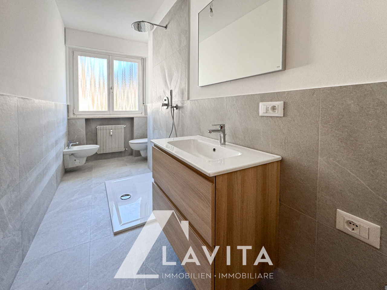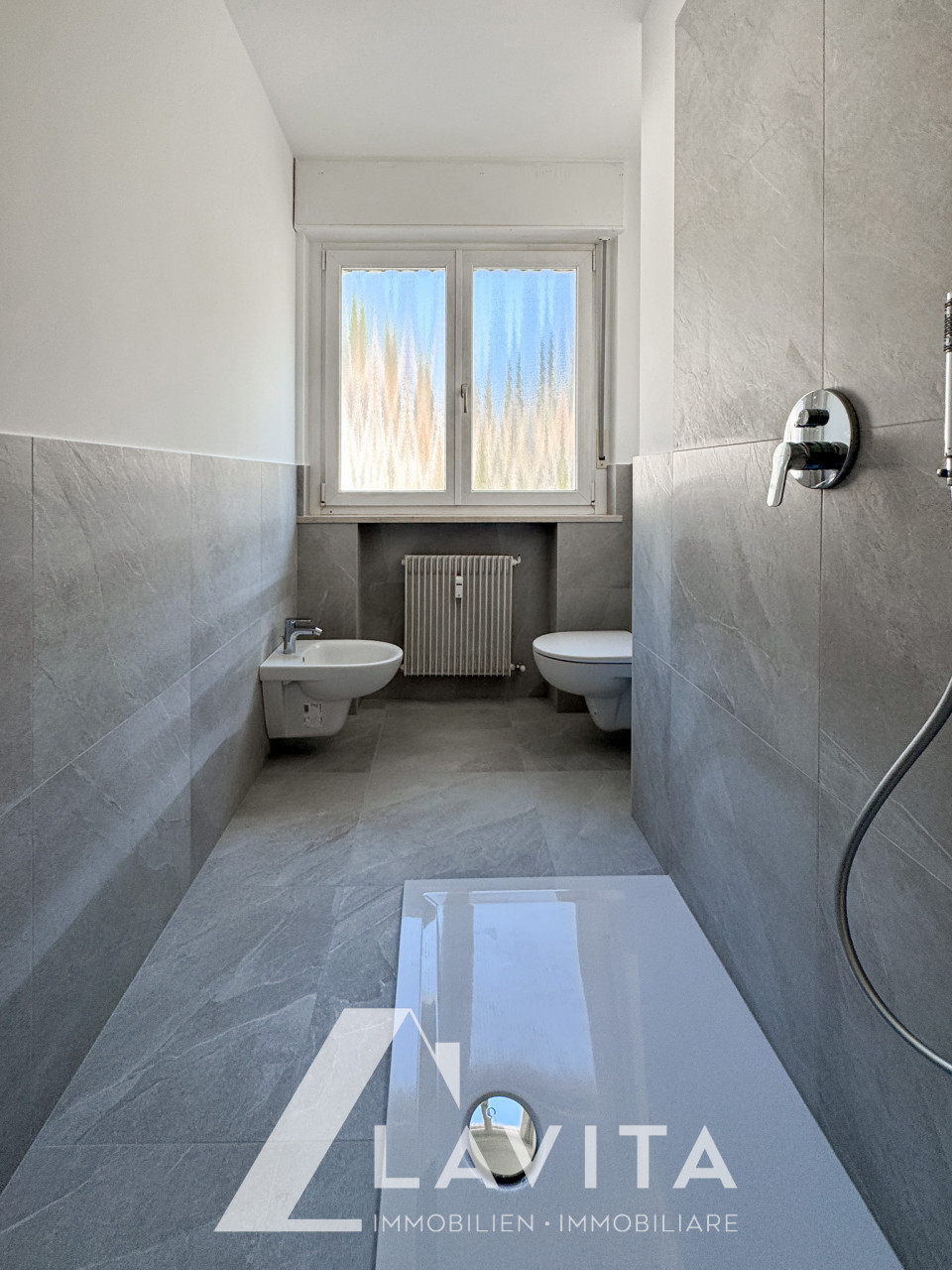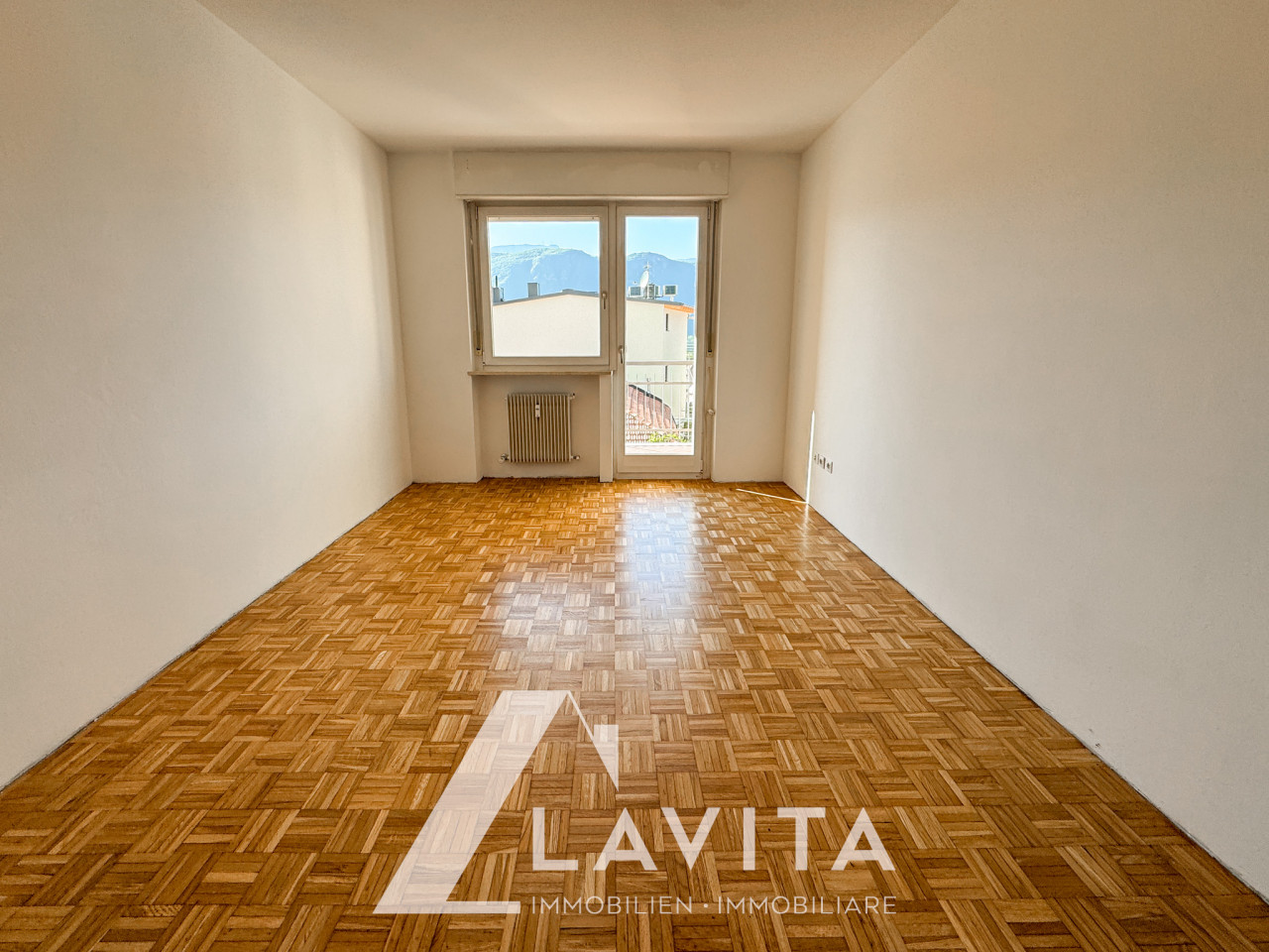 Via Innerhofer: in una zona centrale e soleggiata, al secondo piano di un edificio degli anni ’70 senza ascensore, proponiamo un quadrilocale ben esposto con due balconi, a Est e a Ovest.