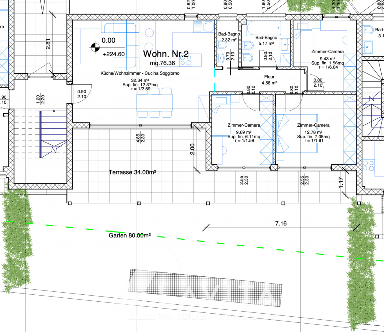 Via Negrelli, con incarico in esclusiva: Situato in una posizione tranquilla, in un complesso residenziale di sole 6 unità abitative certificato "Casaclima A-Nature" e costruito nel 2017, proponiamo al piano terra questo quadrilocale con 114 mq di giardino privato, di cui 34 mq di porticato coperto.