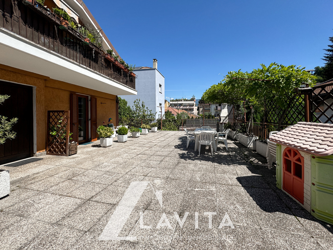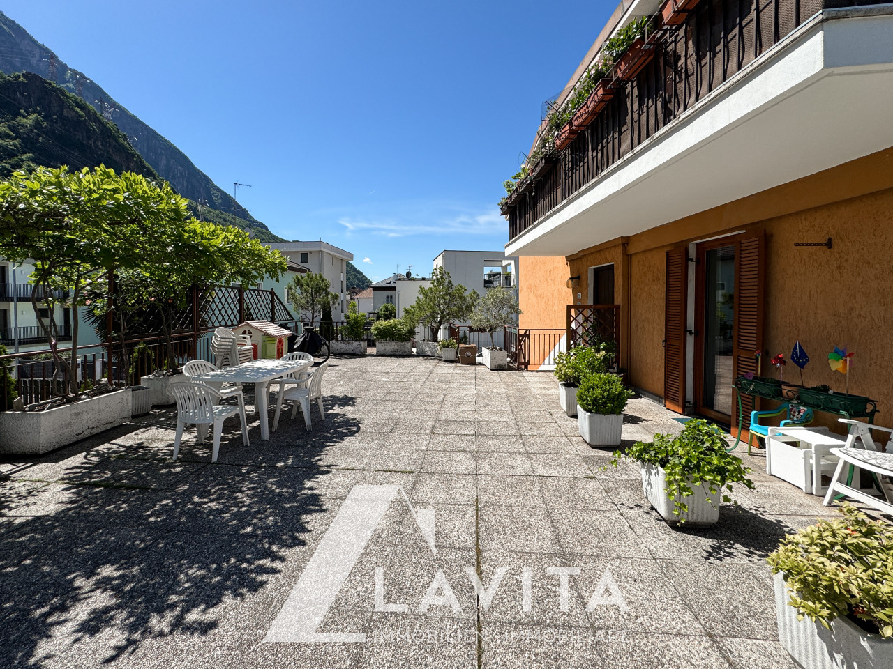 Inoltre dispone di un’ampia terrazza comune, condivisa solo con gli altri 3 appartamenti, ideale per godersi al meglio lo spazio esterno.